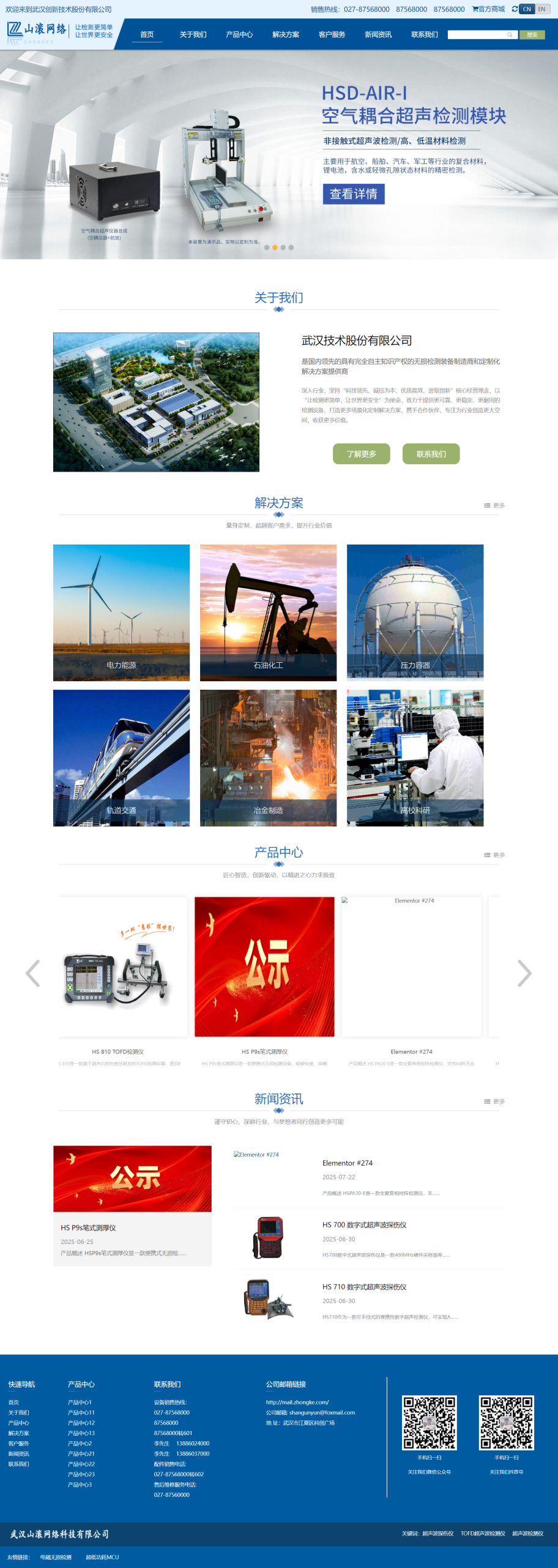 蓝色工业产品及解决方案类自适应网站模板wordpress主题